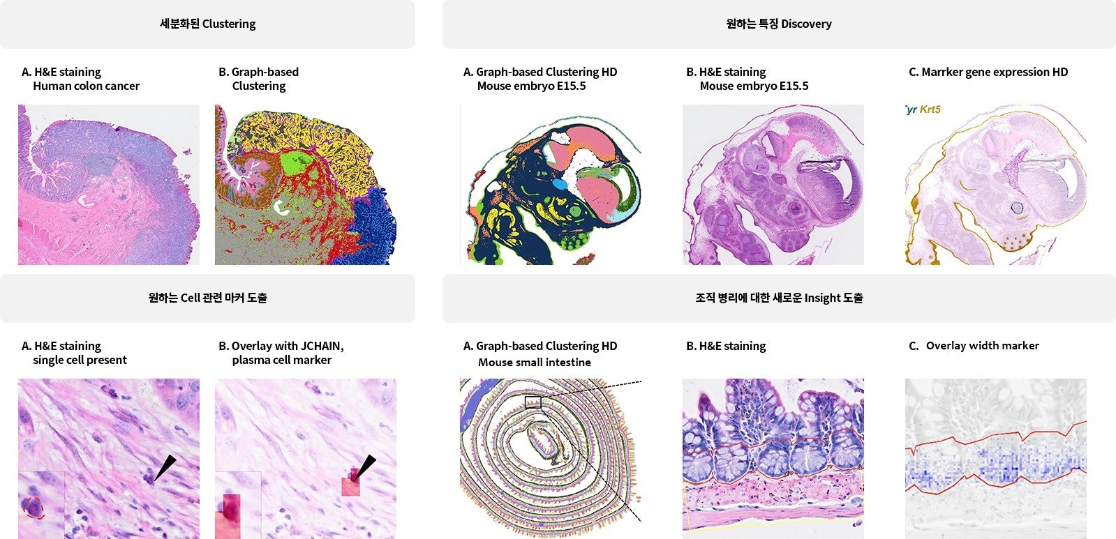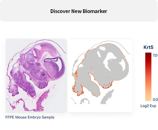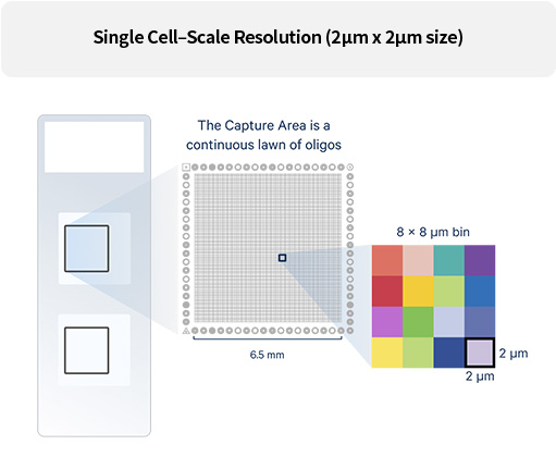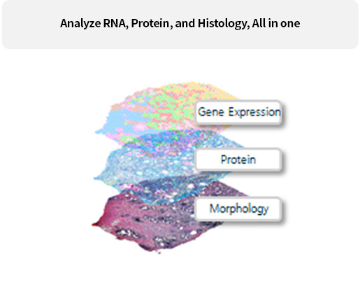 Whole Transcriptome을 Sub-cellular 단위의 해상도로 빈 공간 없이 확인하여 새로운 세포 및 바이오마커를 discovery하고, Spatial Analysis에 대한 insight를 제공합니다.